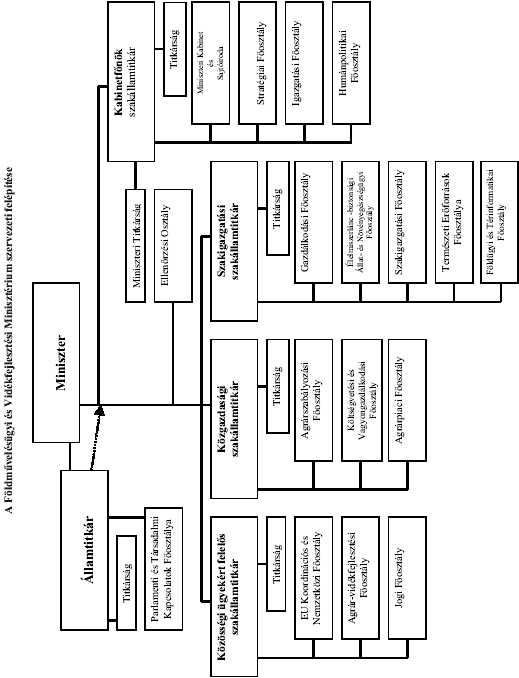 4. § (1) A minisztérium hivatali szervezetének vezetője a miniszter, akit általános jogkörrel az államtitkár helyettesít. (2) Az államtitkár tevékenységét a miniszter irányítja.