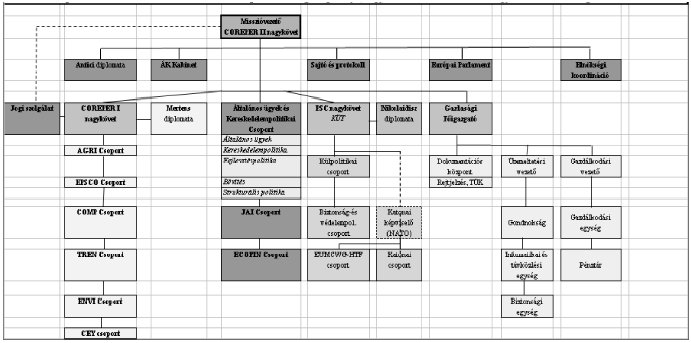 Az Európai Unió mellett működő Állandó Képviselet organigramja, figyelemmel a 2011-es magyar EU-elnökségi feladatokra is