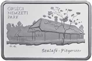 (3) Az emlékérme hátlapján, a középmezőben az Őrségi Népi Műemlékegyüttes egyik épületcsoportjának ábrázolása látható. Az épületcsoport ábrázolásától balra fent az „ŐRSÉGI NEMZETI PARK”, jobbra lent a „Szalafő – Pityerszer” felirat olvasható. Az épületcsoport ábrázolása alatt, bal oldalon található Gáti Gábor tervezőművész mesterjegye. Az emlékérme hátlapjának képét a 2. melléklet tartalmazza.