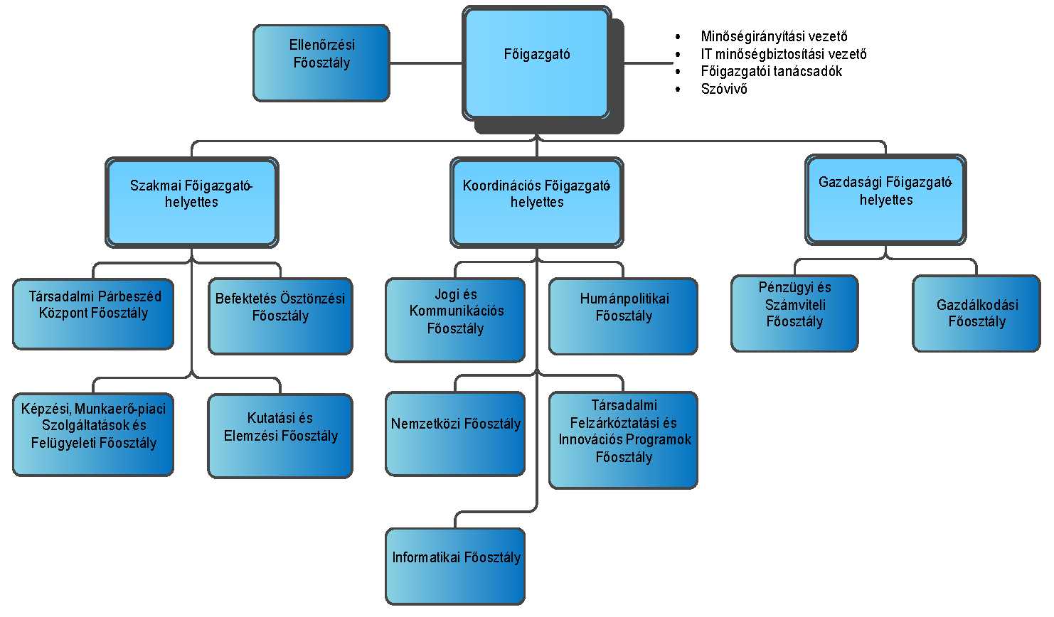 főigazgatói közvetlen (titkárság), kommunikációval (szóvivő) |