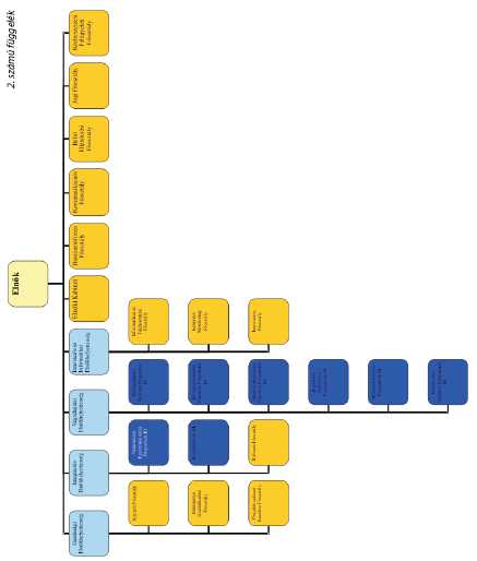 12. § A főosztályvezető vezeti a főosztályt, megállapítja a főosztály ügyrendjét. Felelős a hatáskörébe tartozó feladatok ellátásáért, gyakorolja a szervezeti egység munkatársai tekintetében azon munkáltatói jogköröket, amelyek az 1. számú függelék alapján a hatáskörébe tartoznak. Az elnök és az elnökhelyettesek által a főosztálynak címzett feladat felelőse.
