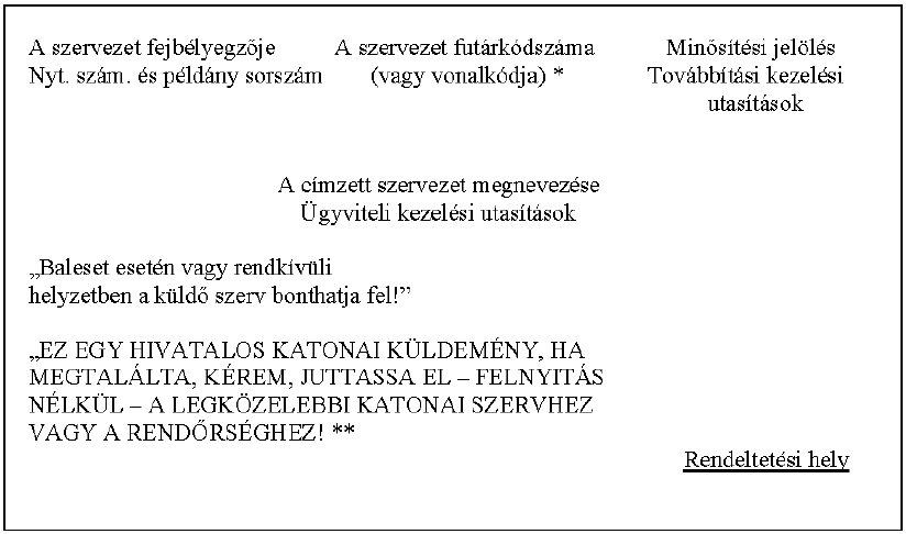 ** Jelölt feliratot minden egyes minősített küldeményt tartalmazó boríték, csomag címoldalán – bélyegzőlenyomattal – kell feltüntetni.”