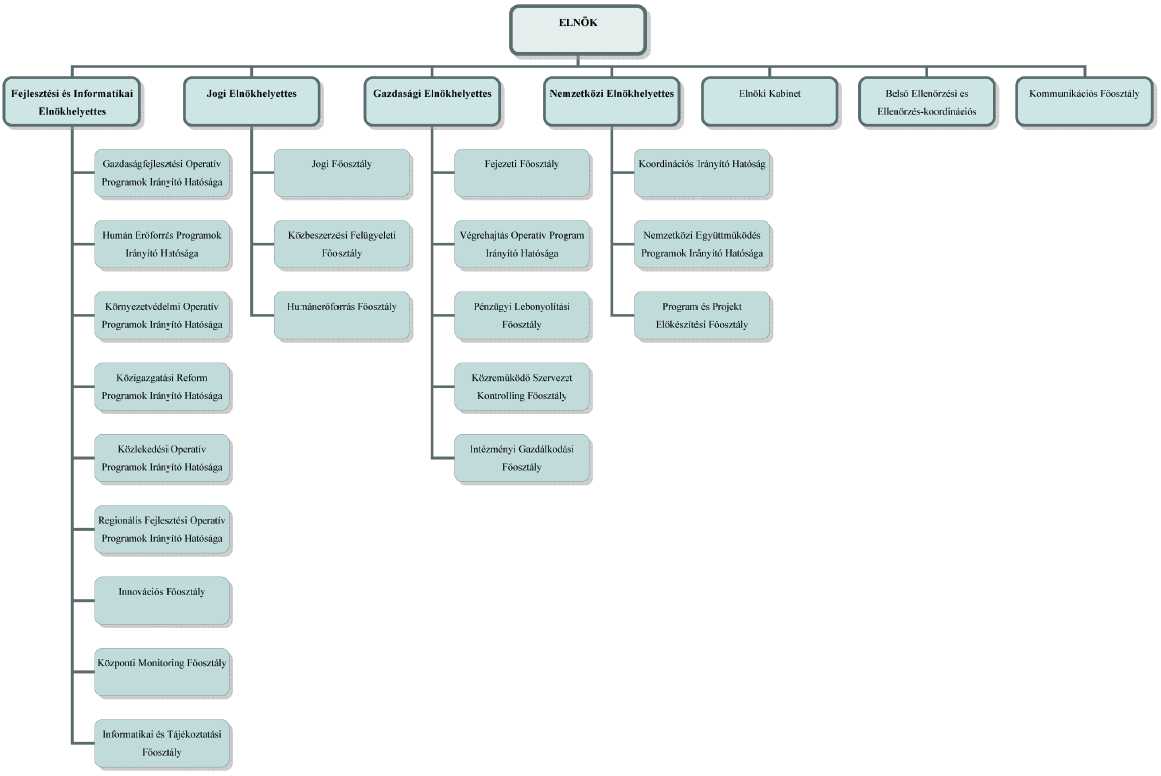 (11) Az elnök közvetlenül irányítja az Elnöki Kabinetet, a Belső Ellenőrzési és Ellenőrzés-koordinációs Főosztályt valamint a Kommunikációs Főosztályt.