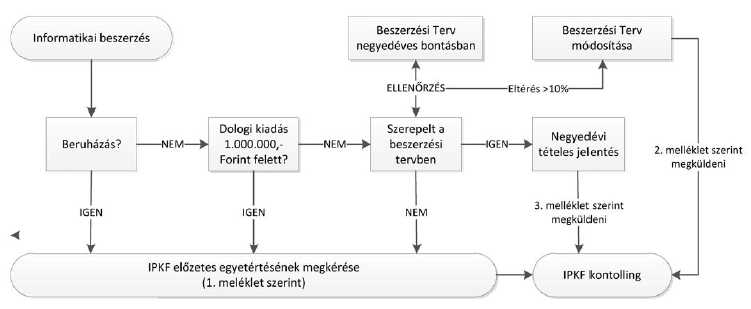 7. § A beszerző intézmény, minden bruttó 1 000 000 forint értékhatárt meghaladó összértékű informatikai tárgyú beszerzés, dologi kiadás esetén a 3. § szerint az IPF előzetes egyetértését kezdeményezni.