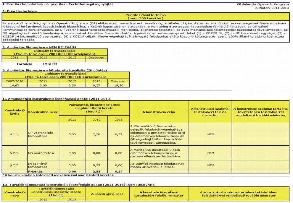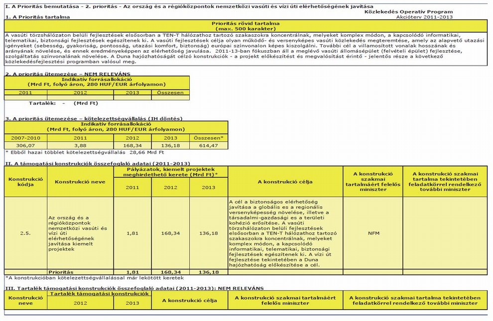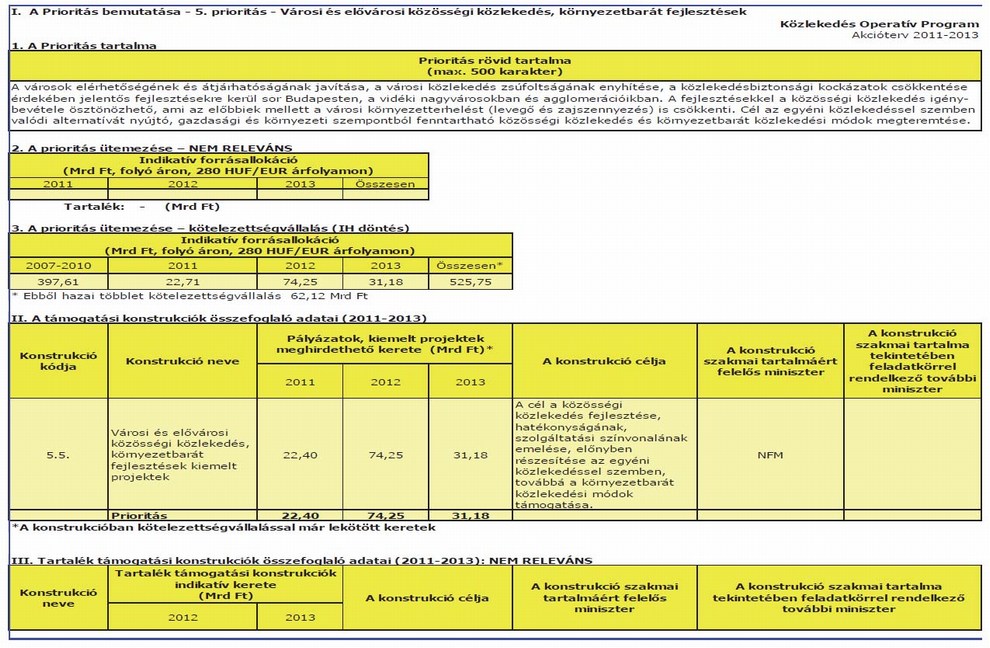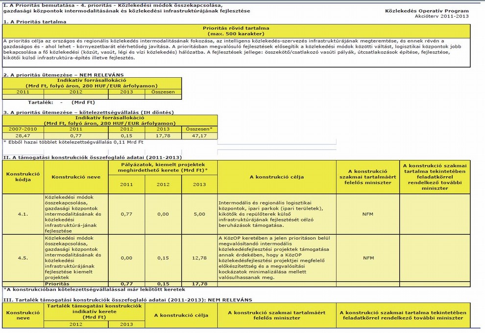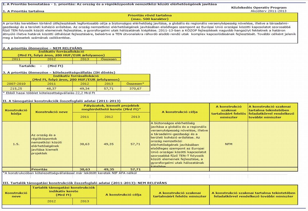 1. megállapítja a Közlekedés Operatív Program 2011–2013. évekre szóló akciótervét az 1. melléklet szerint,