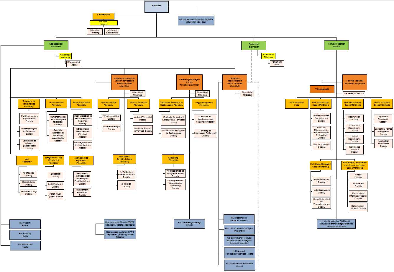 Védelempolitikáért és Védelmi Tervezésért Felelős Helyettes Államtitkári Titkárság, Védelempolitikai Főosztály, Védelmi Tervezési Főosztály |