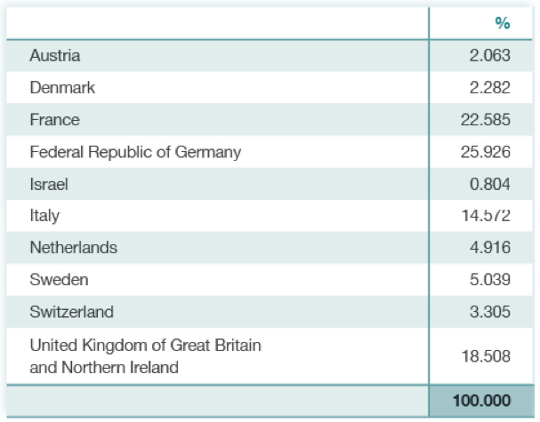 (1) Minden tagállam köteles évente, egy összegben, átváltható pénzeszköz formájában hozzájárulni a Laboratórium tőkeráfordításaihoz és aktuális működési költségeihez a mindenkori mérték szerint, amelyet a Tanács rögzít három éves időtartamra a tagállamok kétharmados többségének támogatásával, és amelynek alapja minden tagállam esetében a termelési tényezők költségén számított nettó nemzeti átlagjövedelem a három legutolsó olyan naptári évre vonatkozóan, amelyről statisztikák állnak rendelkezésre.