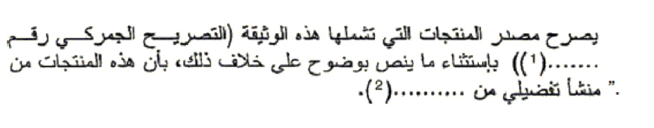 Ο εξαγωγέας των προϊόντων που καλύπτονται από το παρόν έγγραφο (άδεια τελωνείου υπ’αριθ. … (1)) δηλώνει ότι, εκτός εάν δηλώνεται σαφώς άλλως, τα προϊόντα αυτά είναι προτιμησιακής καταγωγής … (2).