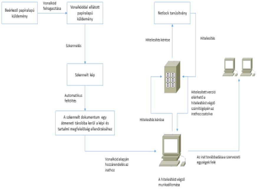 5. § (1)4 Az elnöki titkársági és igazgatási feladatokat ellátó egység a bejövő papíralapú dokumentumot – a (2) bekezdésben meghatározott kivétellel – az érkezés napján, de legkésőbb az érkezést követő munkanapon hiteles elektronikus másolattá alakítja át.