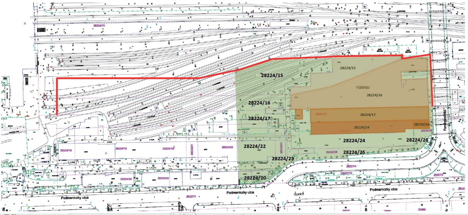 6. felhívja a nemzeti vagyon kezeléséért felelős tárca nélküli minisztert, hogy az MNV Zrt. közreműködésével gondoskodjon az ingatlan-nyilvántartás szerinti Budapest VI. kerület belterület 28224/17, 28224/20, 28224/22 és 28224/26 helyrajzi számú ingatlanok megosztásáról oly módon, hogy a vasútüzemhez nem szükséges területeknek az 1. mellékletben meghatározott részei önálló ingatlanként kerüljenek kialakításra;