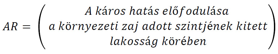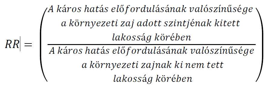 3.2.2. Az ischaemiás szívbetegség és a közúti zaj viszonya kapcsán a környezeti zajnak betudható relatív kockázatnak (RR) kitett lakosságban az y káros hatással (ischaemiás szívbetegség) érintett esetek arányát az x zajforrás (közút) és az i incidencia használatával a következőképp kell kiszámítani: